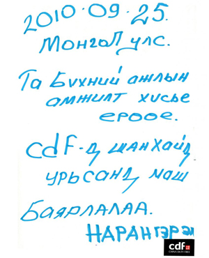 “我家是在蒙古國(guó),我經(jīng)常會(huì)往返內(nèi)蒙古和外蒙古,這次是在在二連浩特免稅店購(gòu)物的時(shí)候 ,當(dāng)時(shí)我就填了一張抽獎(jiǎng)券,幸運(yùn)地中了’上海世博游大獎(jiǎng)’”