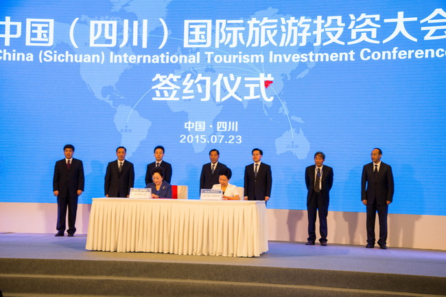 7月23日,集團姜巖總經(jīng)理、鄭江副總會計師、戰(zhàn)發(fā)部陳賢君總經(jīng)理、資產(chǎn)板塊田群總經(jīng)理、景區(qū)板塊曲濤常務副總經(jīng)理等一行參加了在成都舉辦的“中國(四川)國際旅遊投資大會”。會上,姜巖總經(jīng)理代表集團與四川省政府簽訂了《促進中國港中旅集團與四川省政府關(guān)於旅遊業(yè)發(fā)展戰(zhàn)略合作協(xié)定》。四川省委書記王東明、省長魏宏、國家旅遊局局長李金早、中國房地產(chǎn)業(yè)協(xié)會會長劉志鋒等領(lǐng)導出席會議。中國國旅集團董事長兼總經(jīng)理王為民、華僑城集團公司副總裁劉平春 、大連萬達集團董事長王健林、新希望集團董事長劉永好等120多家境內(nèi)外知名旅遊企業(yè)負責人參加了會議。