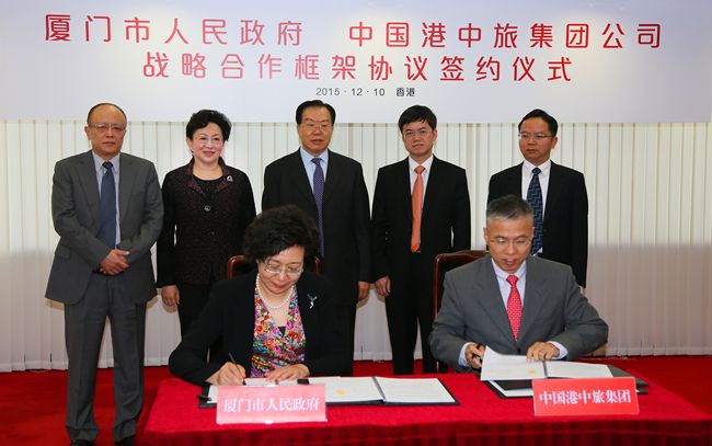 12月10日,集團張學(xué)武董事長、姜巖總經(jīng)理在集團會見了廈門市人民政府裴金佳市長一行,雙方就深化合作進行會談,並舉行《廈門市人民政府 中國港中旅集團戰(zhàn)略合作框架協(xié)定》簽字儀式。