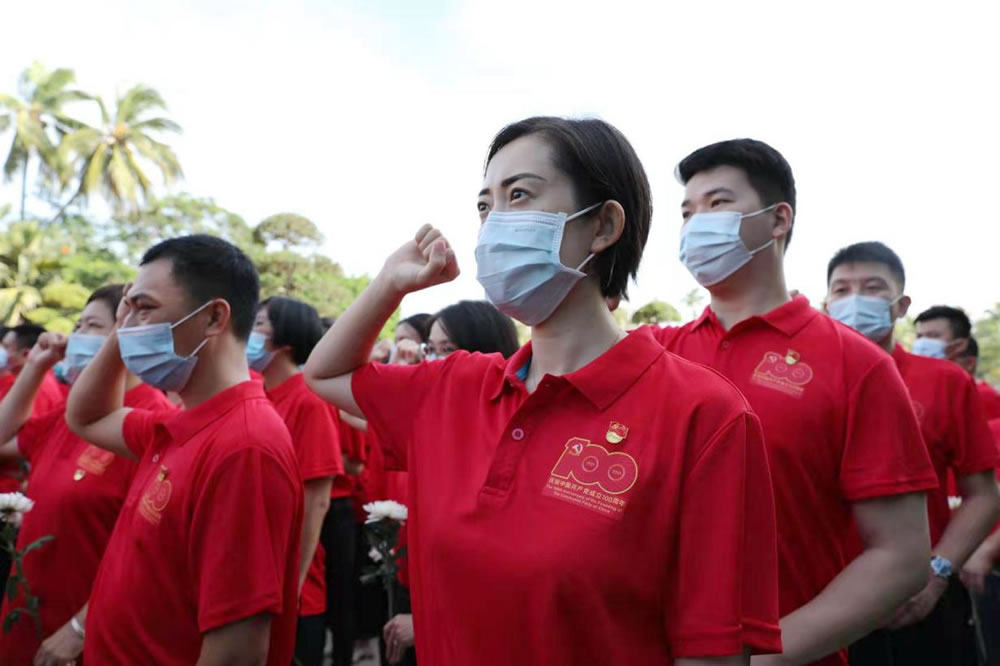 三亞店黨委組織全體黨員進行莊嚴的宣誓活動。一句句鏗鏘有力、擲地有聲的錚錚誓言響徹免稅店上空,是為中國共產(chǎn)黨成立100周年獻禮,更是對黨、對人民的鄭重承諾。