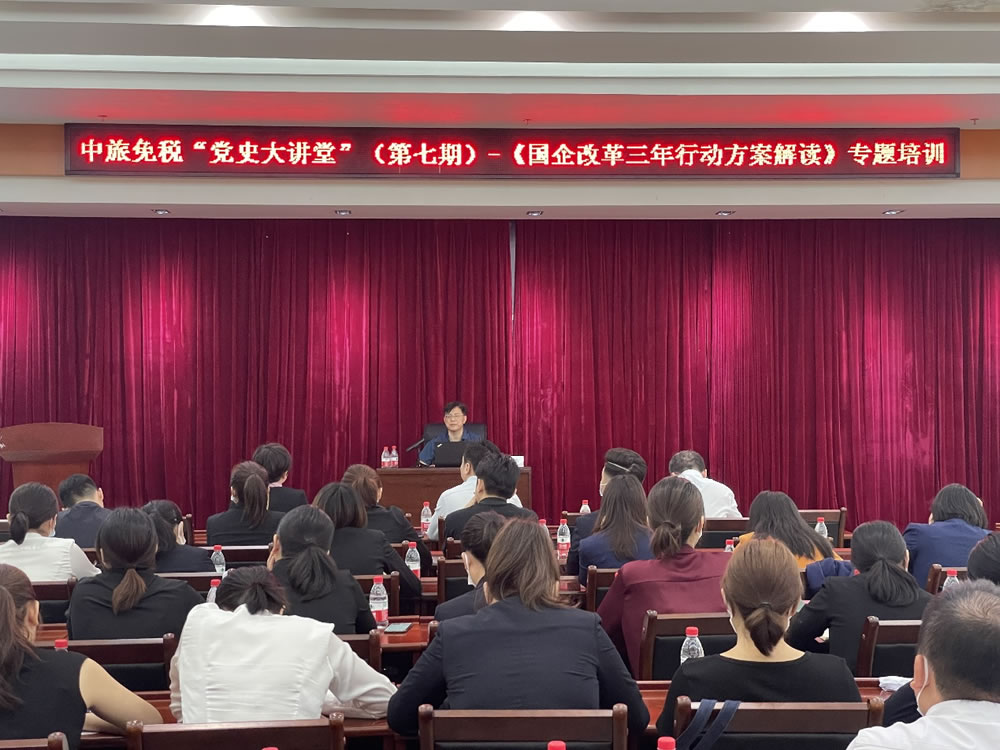 彭建國教授以“抓緊落實三年行動方案 推動國企改革走深走實”為題進(jìn)行全方位解讀,重點講述了國有企業(yè)改革的重大意義、目標(biāo)方向、豐富內(nèi)涵和著力點,深刻解答了國有企業(yè)“為什么改革”“改革什么”“怎么改革”等一系列理論和實踐問題,為中免實施國企改革三年行動提供了及時有力的指導(dǎo)和借鑒。