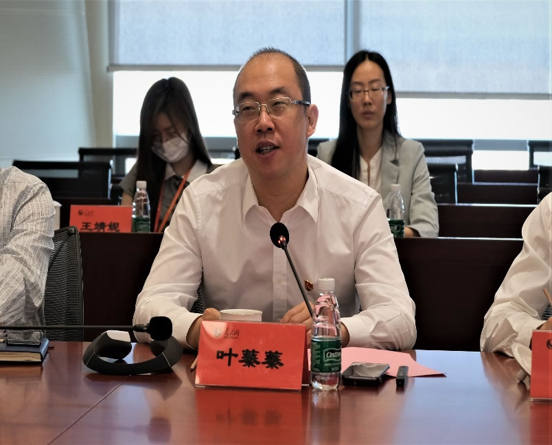 參觀結(jié)束后,雙方進(jìn)行了座談交流。人民網(wǎng)黨委書記、董事長、總裁葉蓁蓁首先介紹了人民網(wǎng)的主責(zé)業(yè)務(wù)。他說,人民網(wǎng)始終履行黨網(wǎng)職責(zé),積極落實(shí)習(xí)總書記關(guān)于推動(dòng)媒體融合發(fā)展提出的全程、全息、全員、全效的“四全”媒體論述。近年來,人民網(wǎng)一直是媒體融合、轉(zhuǎn)型發(fā)展的引領(lǐng)者。人民網(wǎng)深研內(nèi)容科技,聚焦一個(gè)內(nèi)容主業(yè),在內(nèi)容原創(chuàng)、內(nèi)容運(yùn)營、內(nèi)容風(fēng)控、內(nèi)容聚合分發(fā)四個(gè)內(nèi)容業(yè)務(wù)上全面發(fā)力,在內(nèi)容產(chǎn)業(yè)新的社會(huì)化分工的關(guān)鍵“生態(tài)位”發(fā)揮了引領(lǐng)、連接、標(biāo)準(zhǔn)制定等關(guān)鍵作用,探索實(shí)現(xiàn)從“黨管媒體”走向“黨管數(shù)據(jù)”,不斷鞏固中央重點(diǎn)新聞網(wǎng)站“龍頭”地位,逐步發(fā)展成為內(nèi)容科技領(lǐng)軍企業(yè)。