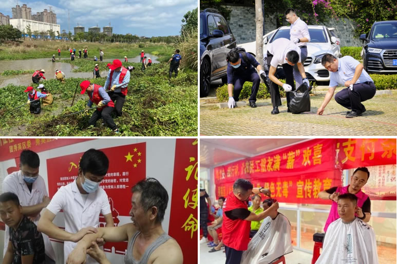 中免(??冢┩顿Y公司黨支部聚焦服務(wù)工程建設(shè)、豐富企業(yè)文化、踐行社會(huì)責(zé)任等方面把實(shí)事辦實(shí)辦好。為??趪?guó)際免稅城項(xiàng)目員工“送清涼”,購(gòu)置了防暑防曬物資,備好冰鎮(zhèn)綠豆湯,不定期推出“驚喜菜”。精心打造“黨史文化墻”,設(shè)立“圖書角”,開(kāi)展“微課堂”讀書活動(dòng),為員工訂閱報(bào)紙期刊,開(kāi)展職工趣味運(yùn)動(dòng)會(huì)、友誼籃球賽,全面更新公司形象展示標(biāo)識(shí)和宣傳欄,設(shè)置新人榜,不斷打造企業(yè)文化新亮點(diǎn)。黨支部聯(lián)合當(dāng)?shù)毓?huì)、共青團(tuán)等機(jī)構(gòu)共同開(kāi)展環(huán)保志愿活動(dòng)和公益普法活動(dòng),提供免費(fèi)體檢、義剪服務(wù),以實(shí)際行動(dòng)關(guān)愛(ài)自貿(mào)港基層建設(shè)者,彰顯央企風(fēng)范。