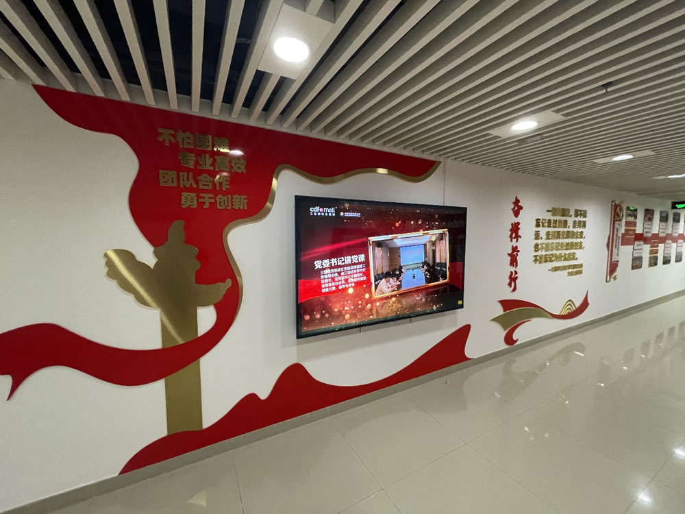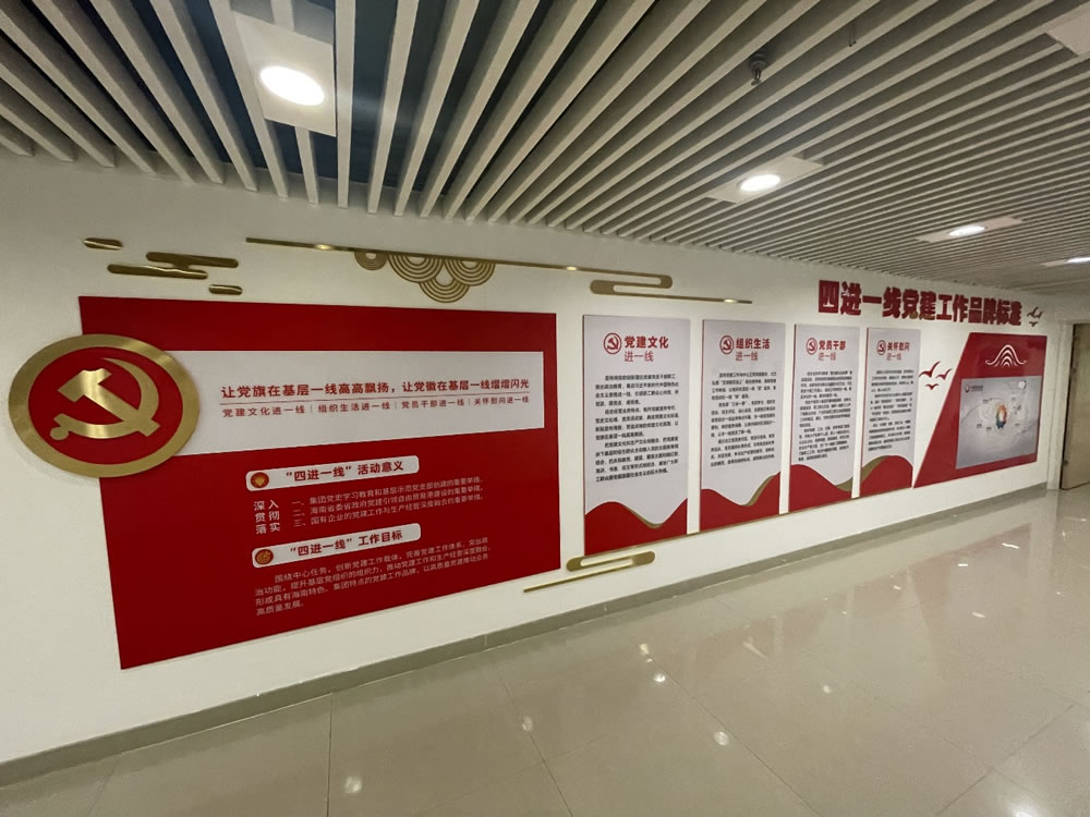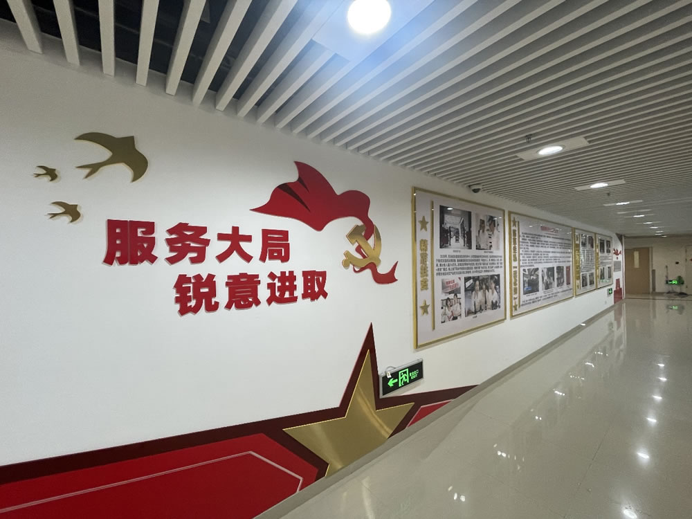 該長(zhǎng)廊全長(zhǎng)近125米,分為“初心使命”“奮輯前行”“黨建領(lǐng)航”“踐行承諾”四個(gè)篇章,涵蓋了習(xí)總書記重要講話精神摘錄、企業(yè)發(fā)展歷程、歷史成績(jī)、黨組織概況及組織架構(gòu)、“我為群眾辦實(shí)事”實(shí)踐活動(dòng)開展情況、精準(zhǔn)扶貧、黨風(fēng)廉政建設(shè)、防范走私套代購(gòu)專項(xiàng)工作、黨建品牌創(chuàng)建要點(diǎn)、支部特色工作法、“兩優(yōu)一先”榮譽(yù)展示、黨建活動(dòng)剪影、黨務(wù)公開欄、集團(tuán)黨建示范經(jīng)驗(yàn)推廣展示等十多個(gè)大類的內(nèi)容,采用了傳統(tǒng)圖文并茂與視聽互動(dòng)相結(jié)合的形式,專門設(shè)置了3處電子顯示屏,循環(huán)播放各類影像素材,全景展現(xiàn)了三亞店多年來(lái)堅(jiān)持“聽黨話、跟黨走”不動(dòng)搖的責(zé)任擔(dān)當(dāng)和廣大黨員干部員工不怕困難、勇于創(chuàng)新的奮斗精神。