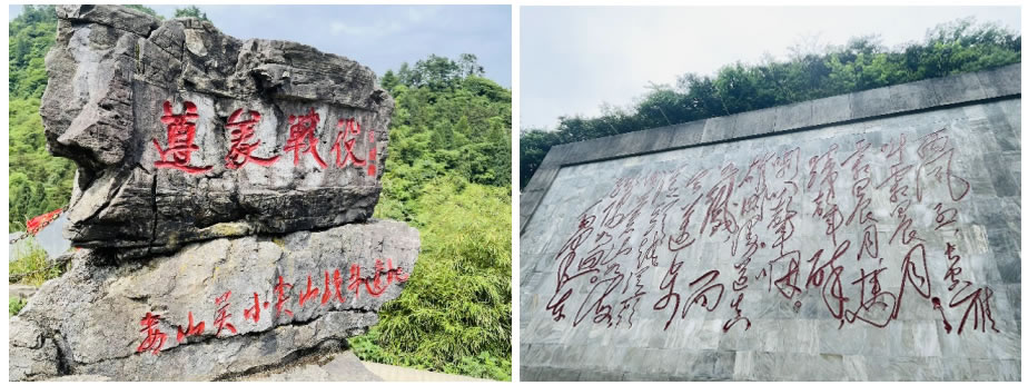 來到婁山關(guān)戰(zhàn)斗遺址,登上西風(fēng)臺(tái)滄桑的石階,藍(lán)色蒼穹之下,勁松不屈,面對(duì)巍峨的山川,一覽無限江山,學(xué)員們慷慨萬分,還一起吟誦了毛澤東同志的那首《憶秦娥?婁山關(guān)》。