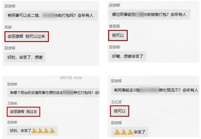 支援過程中,面對(duì)客流急速攀升、顧客咨詢問題增多、秩序維護(hù)繁忙、貨物打包分揀壓力大,需臨時(shí)調(diào)動(dòng)支援崗位等情況,黨群工作部負(fù)責(zé)春節(jié)黨員支援服務(wù)現(xiàn)場(chǎng)協(xié)調(diào)工作的邵彥輝第一時(shí)間溝通協(xié)調(diào),支援隊(duì)員們積極響應(yīng),義無反顧地沖鋒在前?!拔铱梢浴薄拔疫^去”“我來”成了“紅色先鋒隊(duì)”支援交流群里的“刷頻”詞條,這是隊(duì)員們默契配合、共同應(yīng)對(duì)挑戰(zhàn)的具象體現(xiàn)。