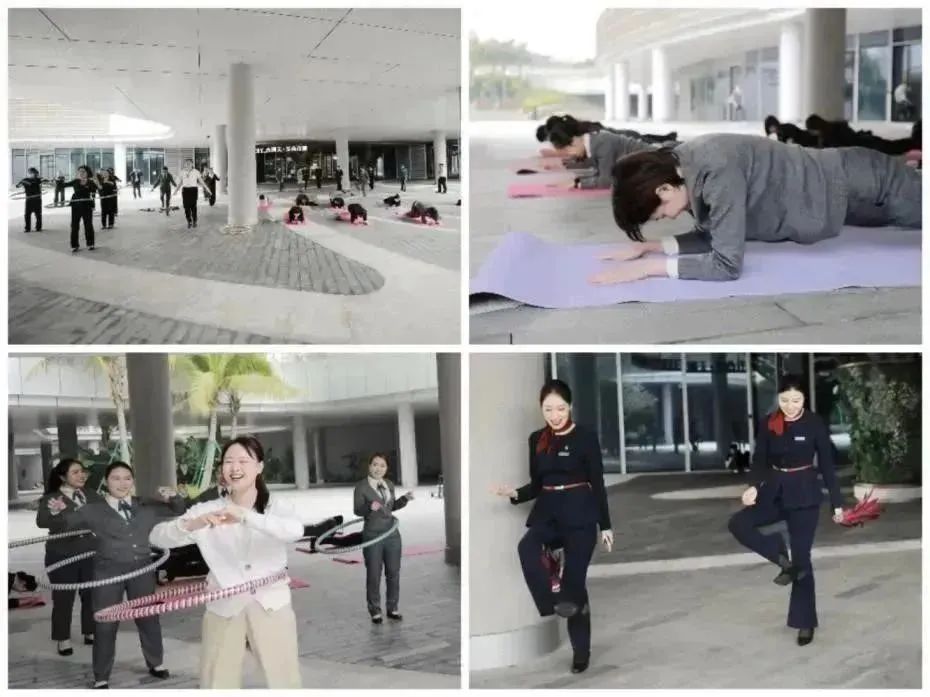 3月6日、7日,以"運動燃激情 活力迎三八"為主題,于免稅店下沉廣場開展"三八節(jié)"趣味健身活動,活動包含一分鐘跳繩、一分鐘呼啦圈、一分鐘踢毽子、仰臥起坐、平板支撐五個"挑戰(zhàn)"項目,共計1400余名女職工到場參與。精神煥發(fā)的女職工們身姿矯健,臉上洋溢著快樂自信的笑容,在三月的春風中共同跳出青春的節(jié)奏……