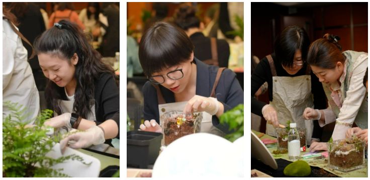 其中,微景觀藝術(shù)沙龍全天分為四場,公司總部200余名女性職工積極參與。活動期間,學員在老師的帶領(lǐng)下,通過聽、聞、看、觸,打開并提升自我的感知力,在與自然共處的同時,擁抱自己,接納自己。