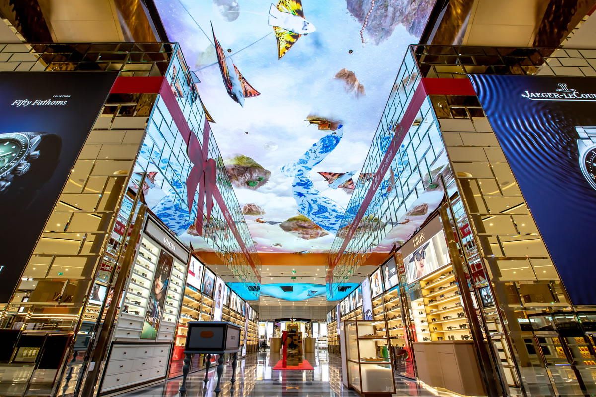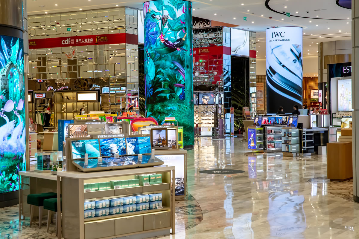 澳門全新購物天堂,超越界限,一站品蘊全球。作為中免集團(tuán)首家澳門市內(nèi)旗艦店,cdf澳門上葡京店秉承中免集團(tuán)“分享購物的快樂,延伸旅游的享受”的企業(yè)使命,打造澳門全新購物天堂,為廣大游客提供頂級奢華的購物體驗。門店占地約 7500 平方米,以度假村中的超現(xiàn)實島嶼”,夢幻、不可預(yù)測、可視化、富有藝術(shù)感,融匯光影反射的抽象形態(tài),融合復(fù)古與未來的設(shè)計風(fēng)格,打造出在夢幻島嶼的氛圍,為客人提供全新的感官享受,探索新模式購物的無限可能。