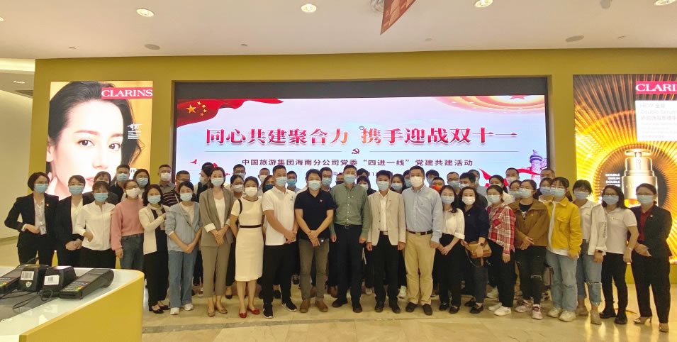 為助力海南離島免稅業(yè)務(wù)在2021年“雙十一”期間營銷熱力綻放,積極構(gòu)建“資源共享、優(yōu)勢互補(bǔ)、互相促進(jìn)、共同提高”的黨建共建格局,推進(jìn)“我為群眾辦實(shí)事”實(shí)踐活動(dòng)和“四進(jìn)一線”活動(dòng)走深走實(shí)。11月10日,中免海南運(yùn)營總部、海南省免稅品有限公司、中免投資??诠?、中免投資海南公司聯(lián)合集團(tuán)海南分公司、集團(tuán)財(cái)務(wù)共享中心,組成50多人的黨員聯(lián)合突擊隊(duì)、服務(wù)隊(duì),深入??谑腥赵聫V場免稅店銷售一線,開展“同心共建聚合力,攜手迎戰(zhàn)雙十一”黨建共建黨員服務(wù)活動(dòng)。