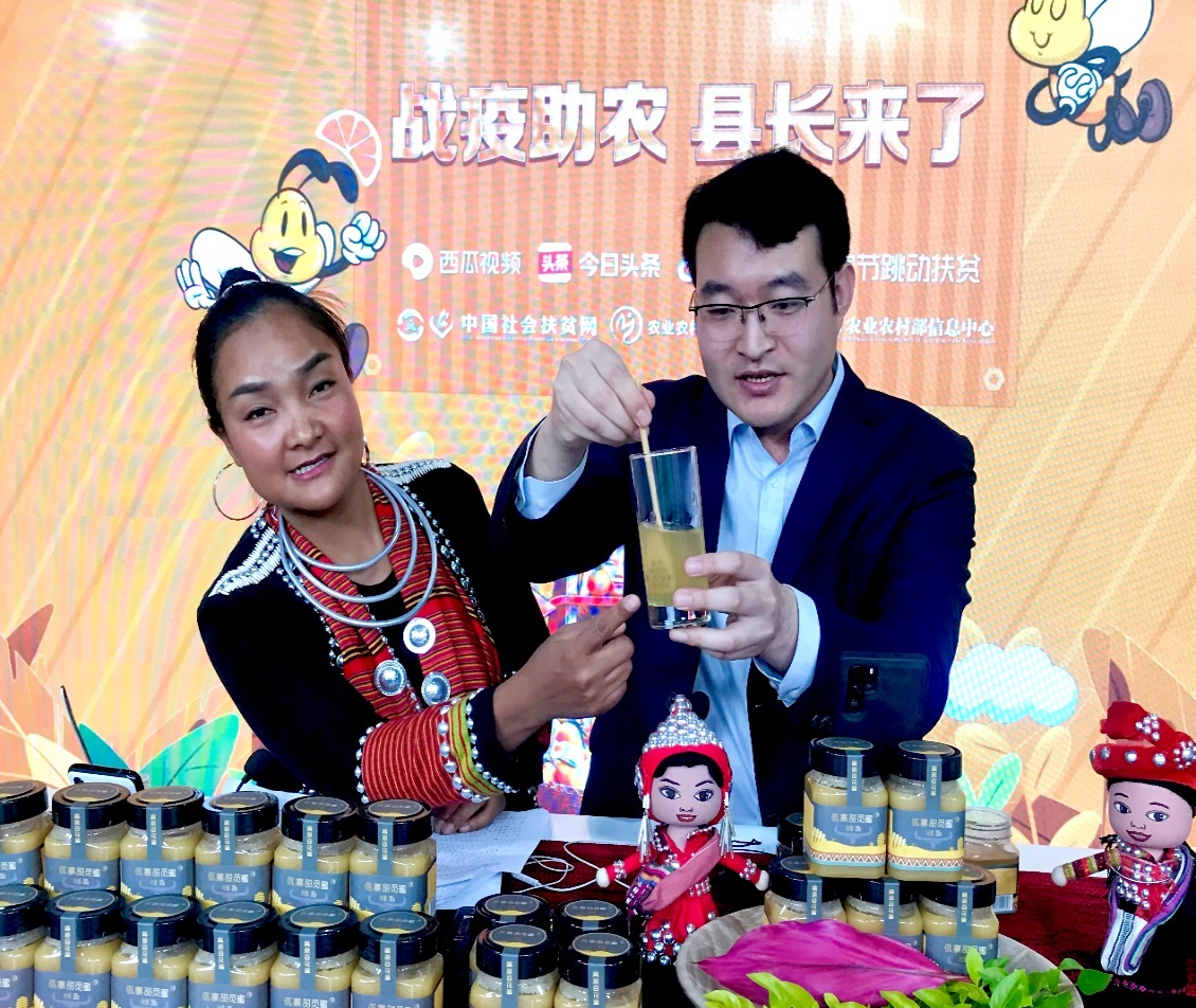 2020年是脫貧攻堅全面收官之年,面對突如其來的疫情,群眾的增收,脫貧攻堅的鞏固和提升需要尋找新的發(fā)力點。危中有機,西盟縣委縣政府確定參加抖音和今日頭條、西瓜視頻聯(lián)合發(fā)起的“戰(zhàn)疫助農(nóng)”公益項目。孫海軍同志主動請纓,參與“縣長來直播”,主要任務是幫助農(nóng)產(chǎn)品找到銷路。2020年3月26日,孫海軍同志化身主播,通過西瓜視頻平臺向百萬網(wǎng)友推薦西盟的天然蜂蜜產(chǎn)品。據(jù)統(tǒng)計,當日活動中,直播間人氣194萬,三個小時累計銷售西盟百花蜜3.9萬件,累計銷售額達237.4萬元,有效帶動了農(nóng)特產(chǎn)品線上銷售,幫助農(nóng)民群眾減少經(jīng)濟損失。