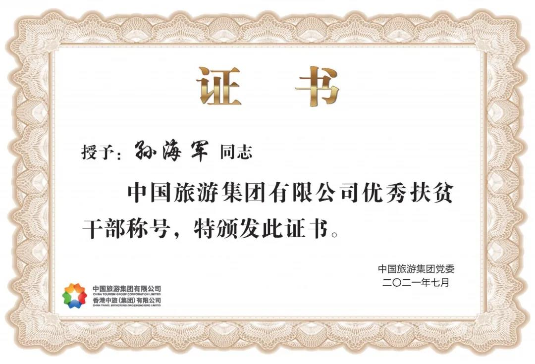 中國旅游集團中免股份有限公司黨群工作部被評為“中國旅游集團2020年度優(yōu)秀扶貧單位”;黨群工作部組織建設經(jīng)理孫海軍被評為2020年度優(yōu)秀扶貧干部。